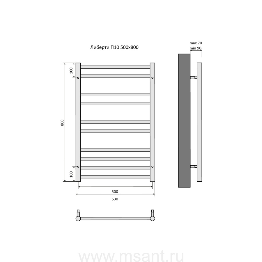 Полотенцесушитель водяной Aquatek Либерти П10 500х800 мм черный муар