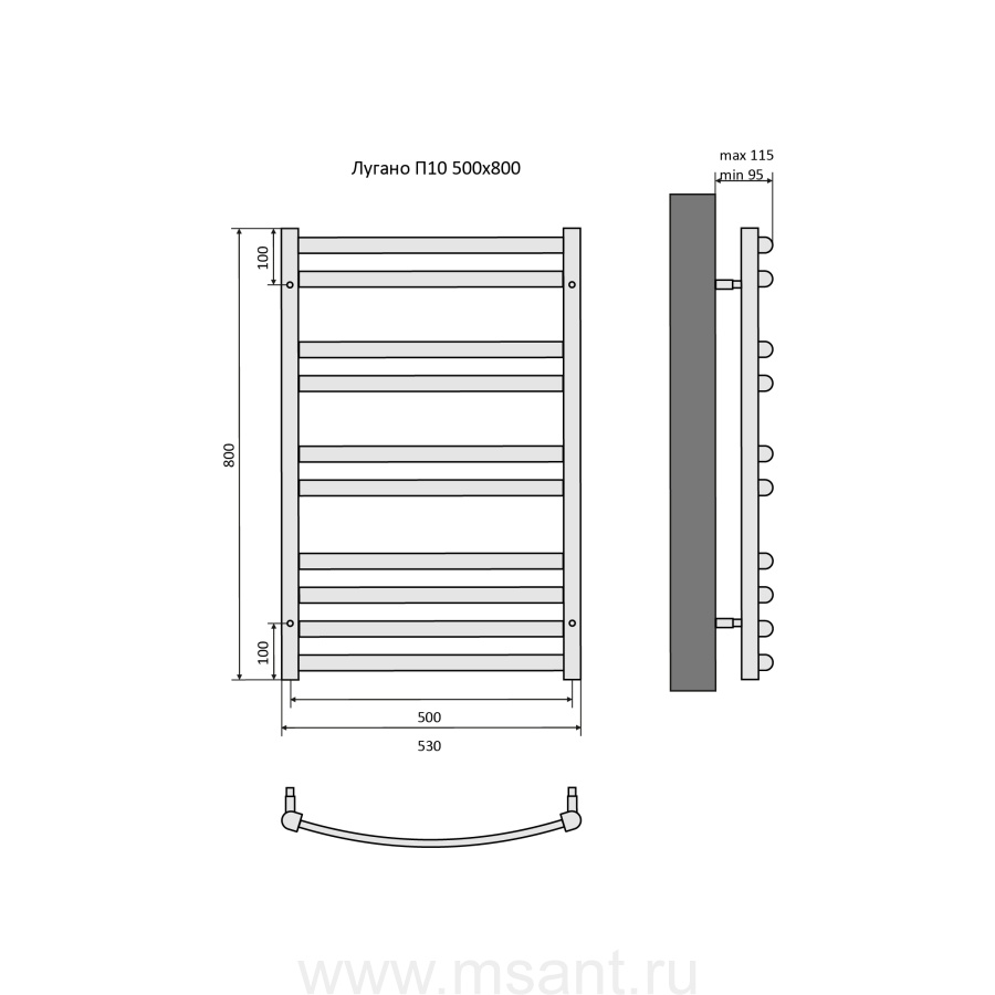 Полотенцесушитель водяной Aquatek Лугано П10 500х800 мм хром