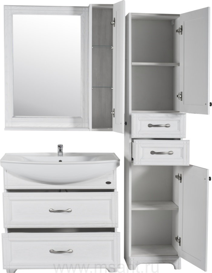 Шкаф-пенал ASB-Woodline Берта 40 белый, патина серебро