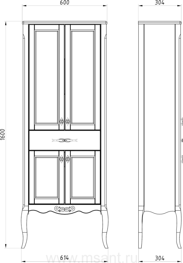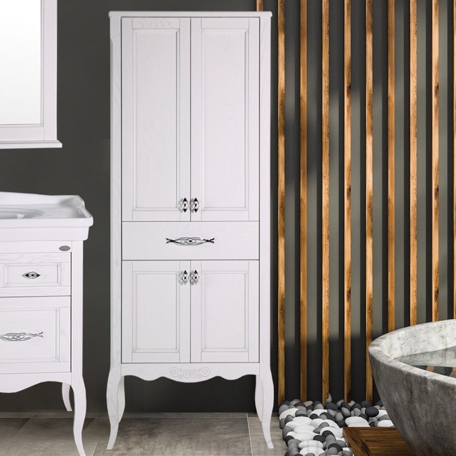 Шкаф-пенал ASB-Woodline Модерн 60 белый, патина серебро