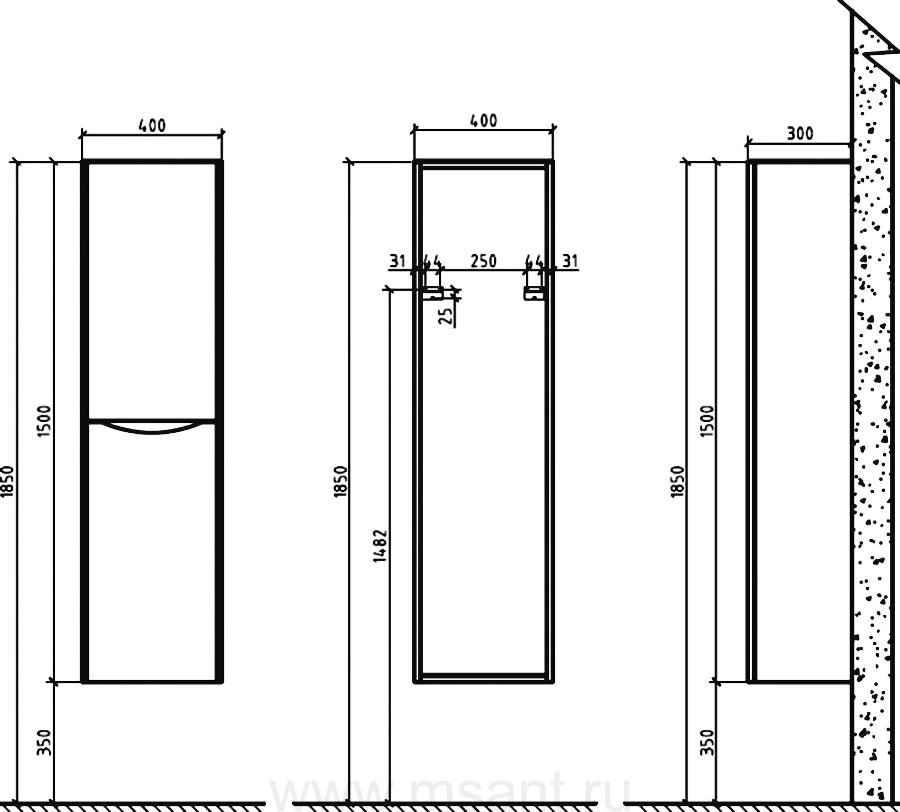 Шкаф-пенал BelBagno Ancona-N 150 bianco lucido R