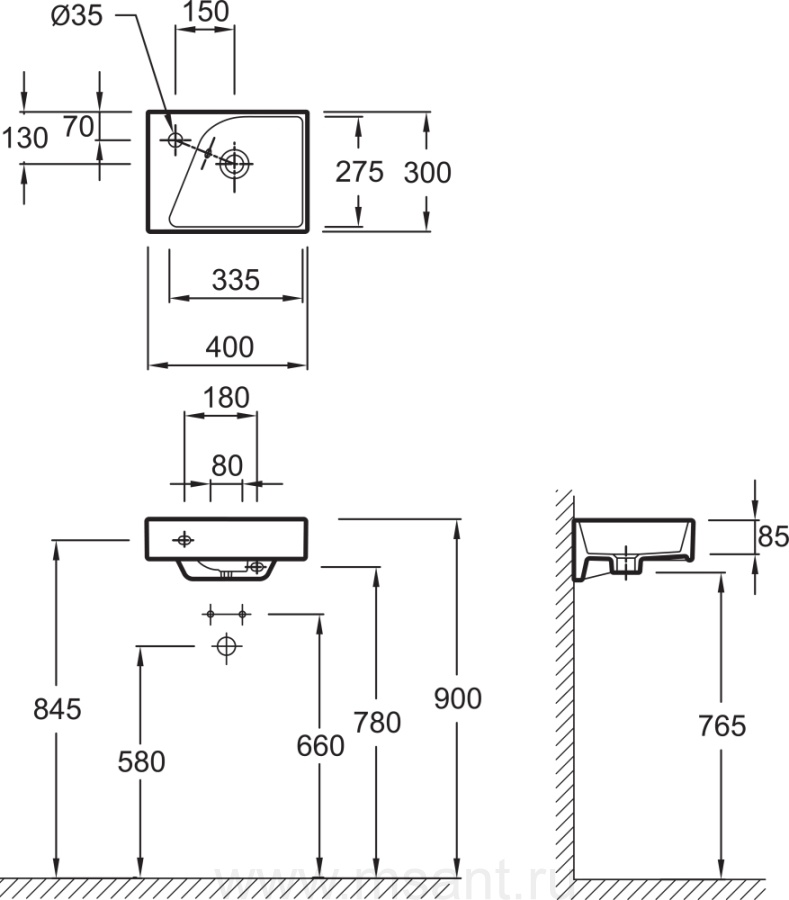 Рукомойник Jacob Delafon Rythmik E4786-00 40 см