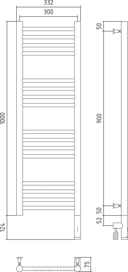 Полотенцесушитель электрический Сунержа Богема 3.0 100х30 белый, R