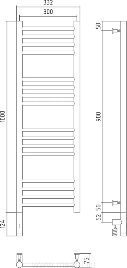 Полотенцесушитель электрический Сунержа Богема 3.0 100х30 хром, L