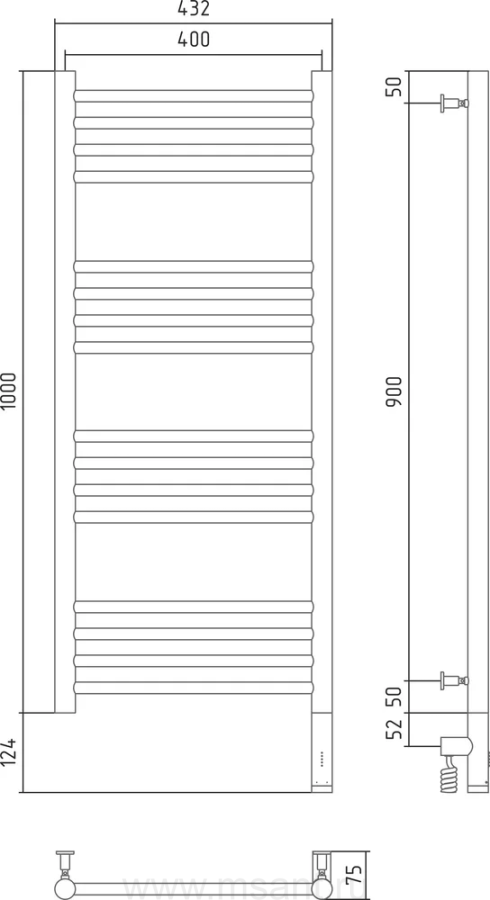 Полотенцесушитель электрический Сунержа Богема 3.0 100х40 черный, R