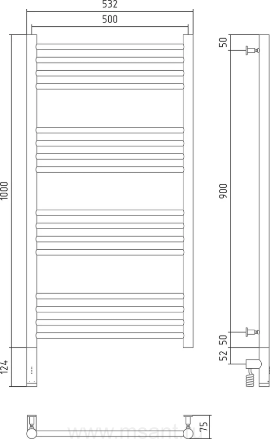 Полотенцесушитель электрический Сунержа Богема 3.0 100х50 хром, L