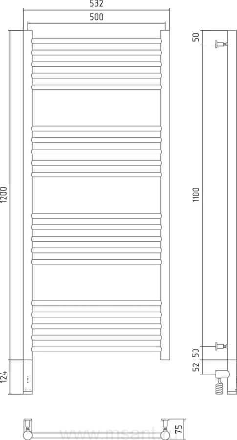 Полотенцесушитель электрический Сунержа Богема 3.0 120х50 черный, L