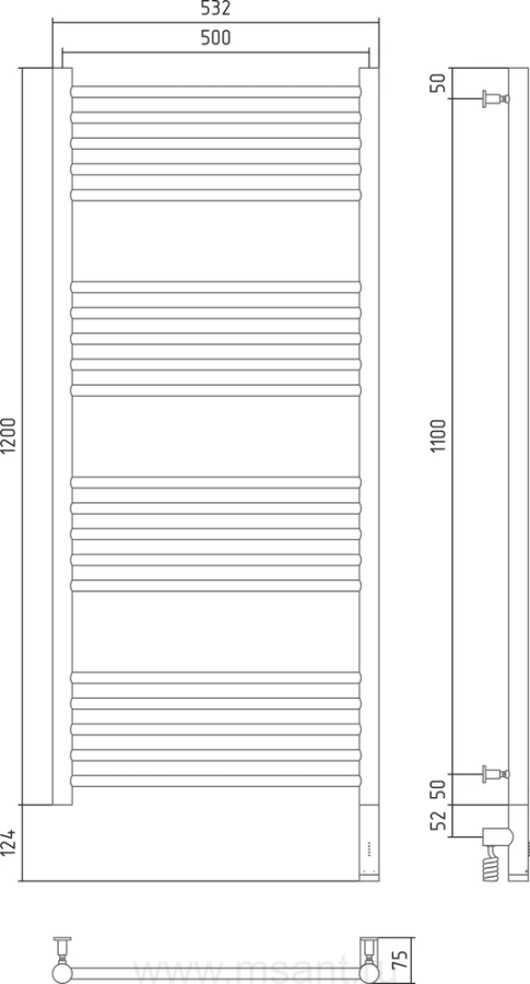 Полотенцесушитель электрический Сунержа Богема 3.0 120х50 черный, R
