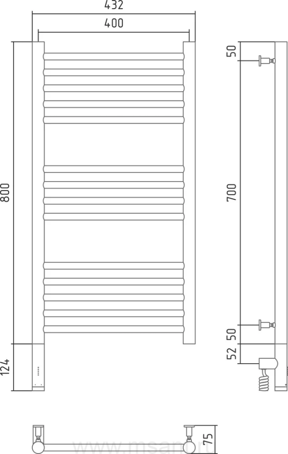 Полотенцесушитель электрический Сунержа Богема 3.0 80х40 белый, L