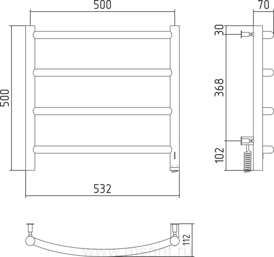 Полотенцесушитель электрический Сунержа Галант 4.0 50х50 черный, R