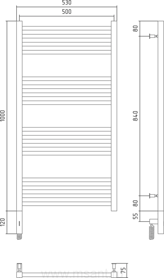 Полотенцесушитель электрический Сунержа Модус 3.0 100х50 черный, L