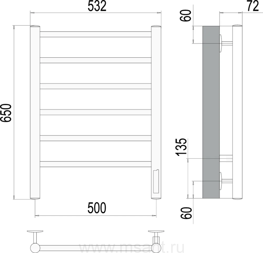 Полотенцесушитель электрический Terminus Аврора П6 500*650