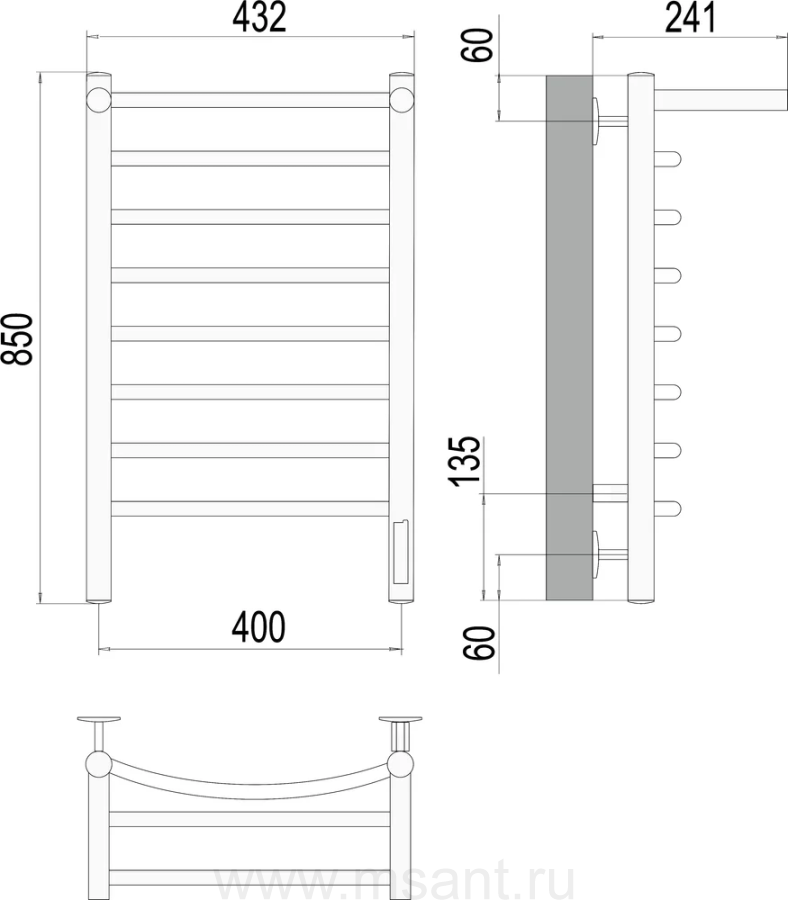 Полотенцесушитель электрический Terminus Классик П8 400x850 с полкой