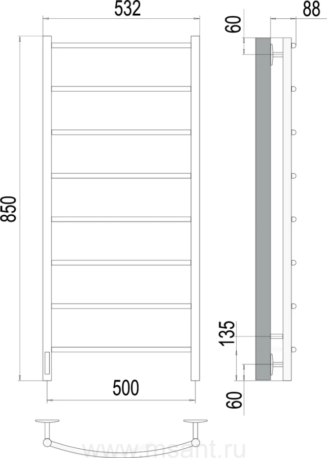 Полотенцесушитель электрический Terminus Классик П8 500x850 левый