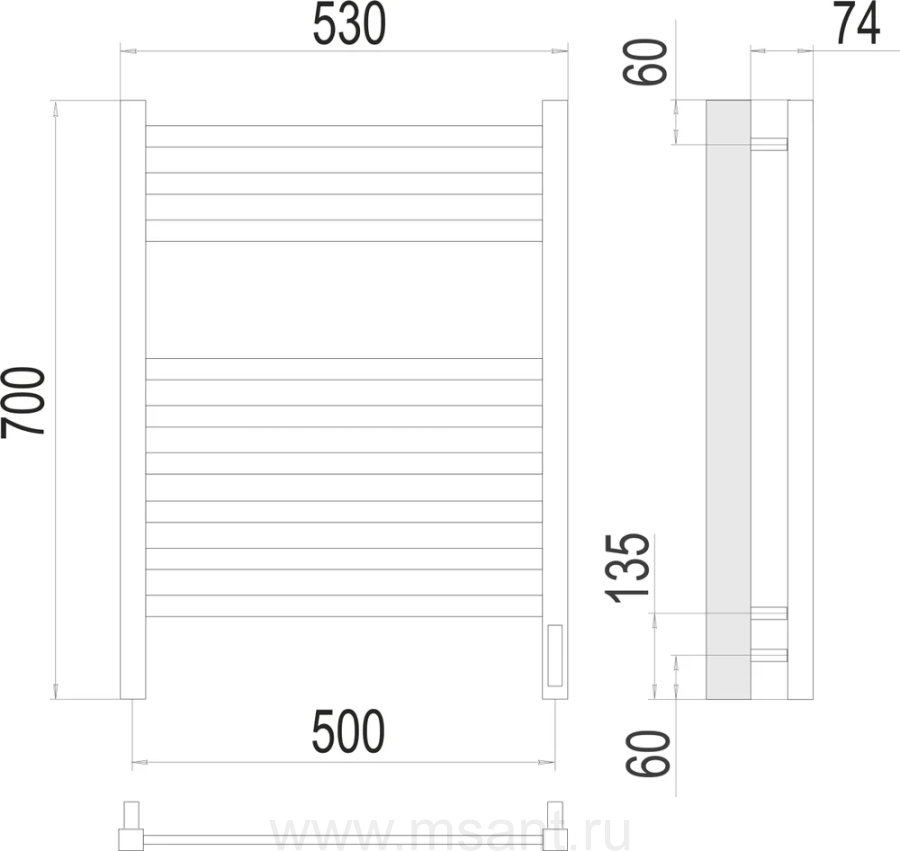 Полотенцесушитель электрический Terminus Ното П9 500х700