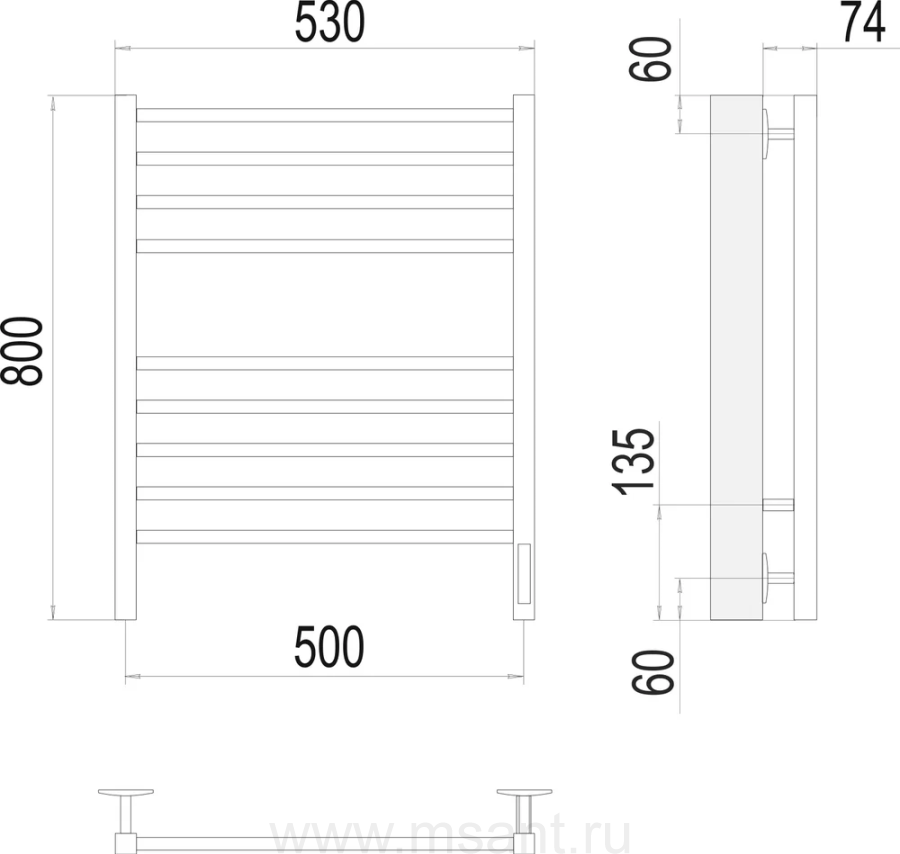 Полотенцесушитель электрический Terminus Сицилия П8 500x800, матовый белый