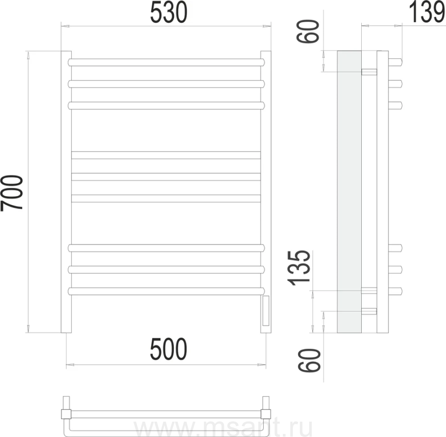 Полотенцесушитель электрический Terminus Соренто П9 500х700