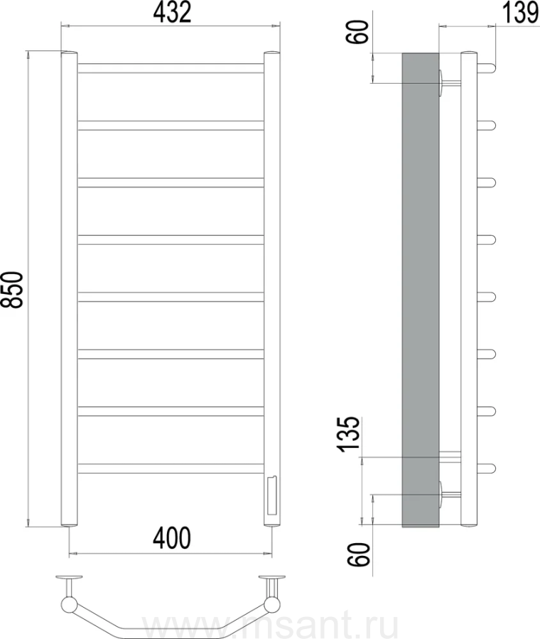 Полотенцесушитель электрический Terminus Виктория П8 400x850
