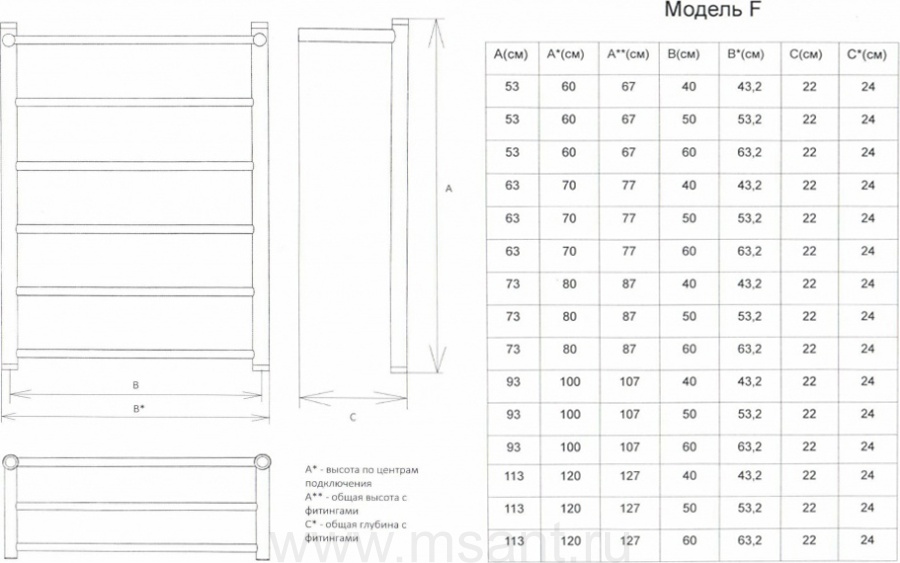 Полотенцесушитель водяной Двин F 80/50 1" - 1/2"