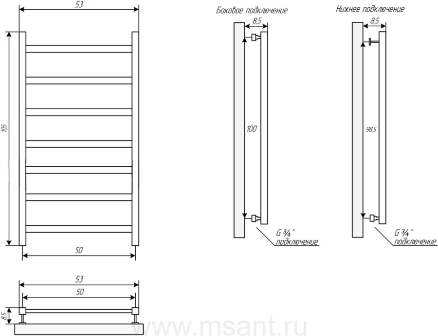 Полотенцесушитель водяной Двин J Plaza 100/50 полированный