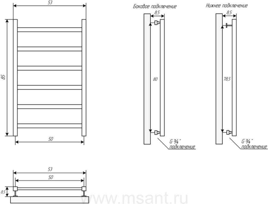 Полотенцесушитель водяной Двин J Plaza 80/50 полированный