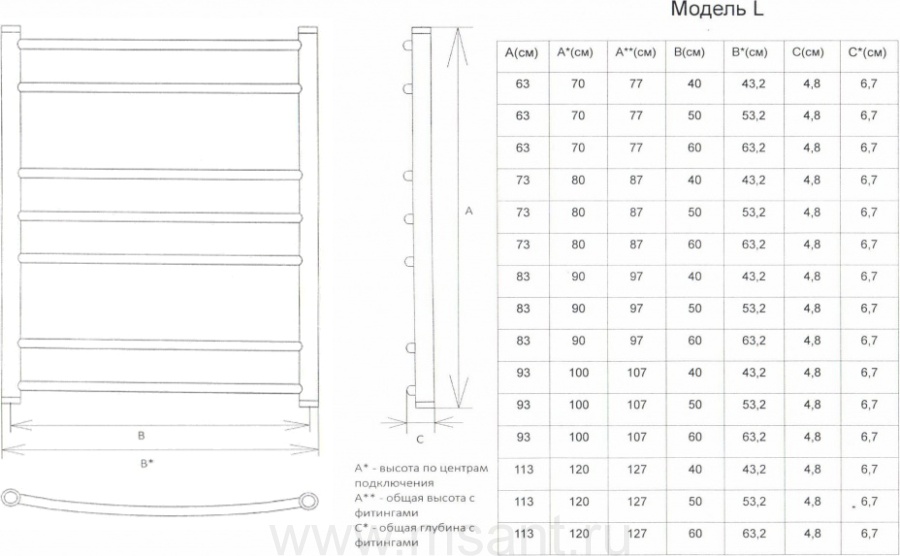 Полотенцесушитель водяной Двин L 80/50 1" - 1/2"