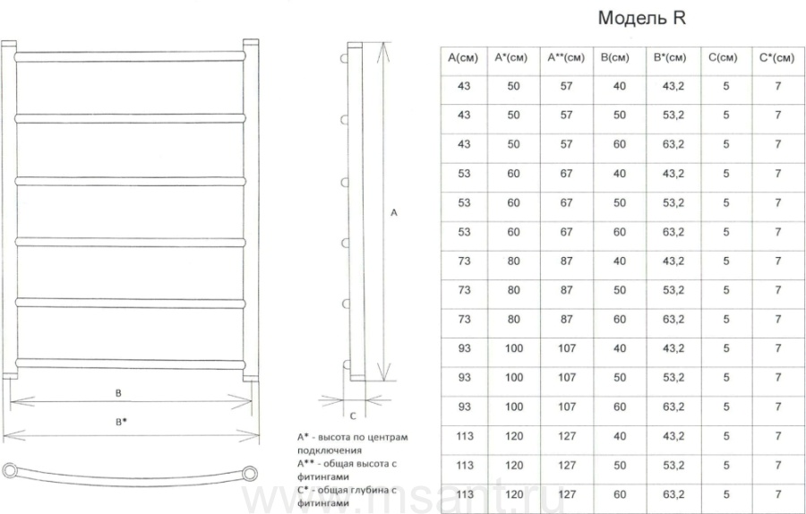 Полотенцесушитель водяной Двин R 80/50 1"-1/2"