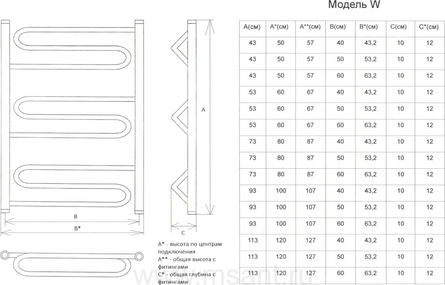 Полотенцесушитель водяной Двин W 80/50 1"-1/2"