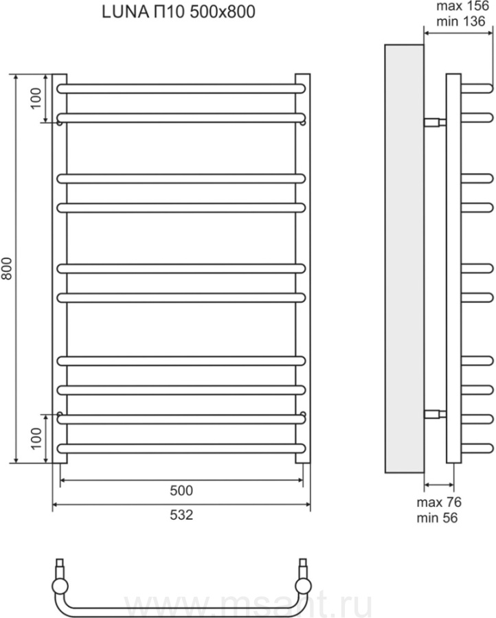 Полотенцесушитель водяной Lemark Luna П10 50x80