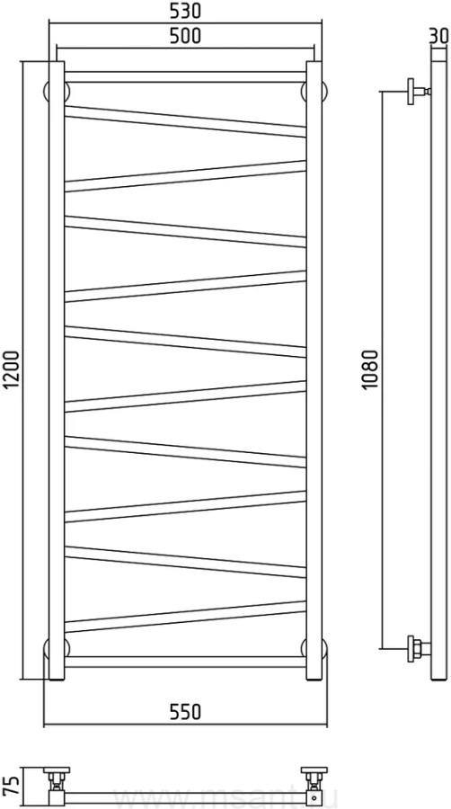 Полотенцесушитель водяной Сунержа Сирокко 120x50, черный матовый