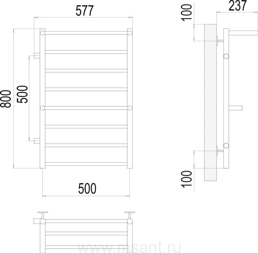 Полотенцесушитель водяной Terminus Анкона П8 500x800 с полкой, с боковым подключением 500 слева