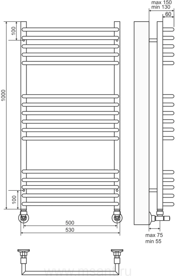 Полотенцесушитель водяной Terminus Арт П16 500х1000