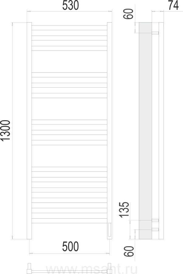 Полотенцесушитель водяной Terminus Енисей П15 500х1200