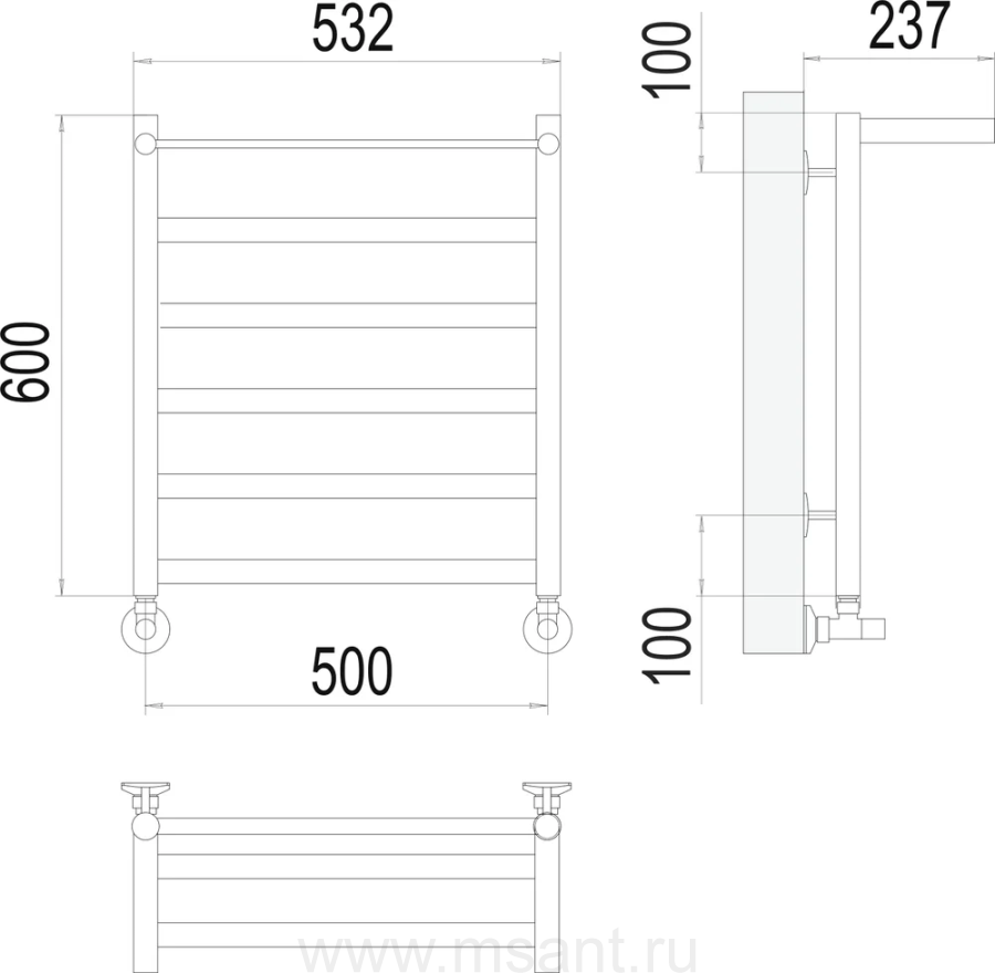 Полотенцесушитель водяной Terminus Хендрикс П6 500x600 с полкой