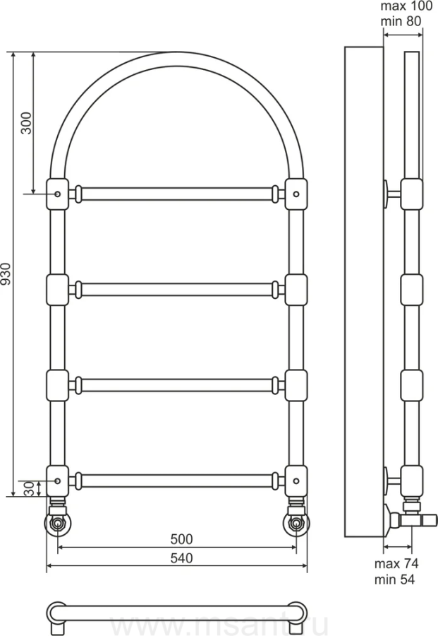 Полотенцесушитель водяной Terminus Версаль П4 500x930 бронза