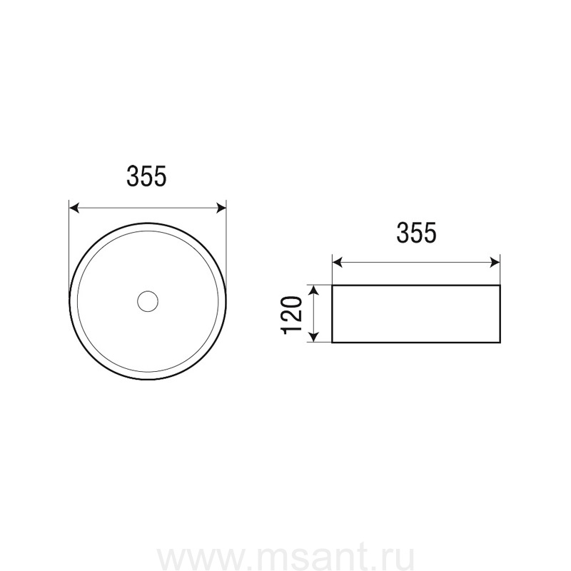 Раковина Azario 355х355х120 накладная, круглая, белый глянец