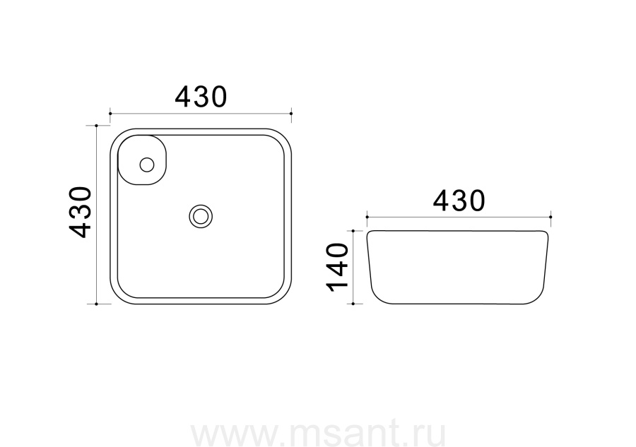 Раковина Azario 43х43х14 накладная, белая