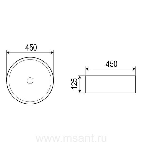 Раковина Azario 45х45х12.5 накладная, круглая, белая