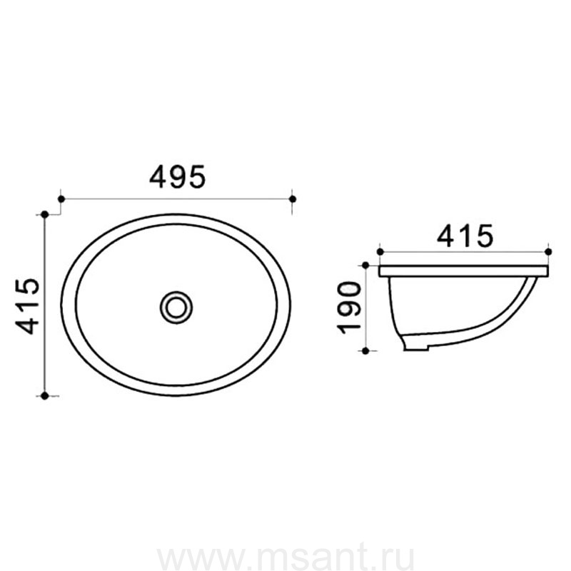 Раковина Azario 49,5х41,5х19 овальная, встраиваемая снизу, белая