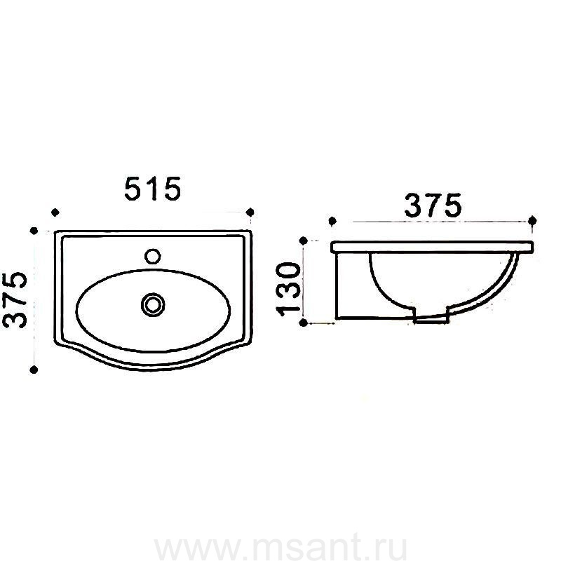 Раковина Azario 51,5х37,5х13 подвесная, белая