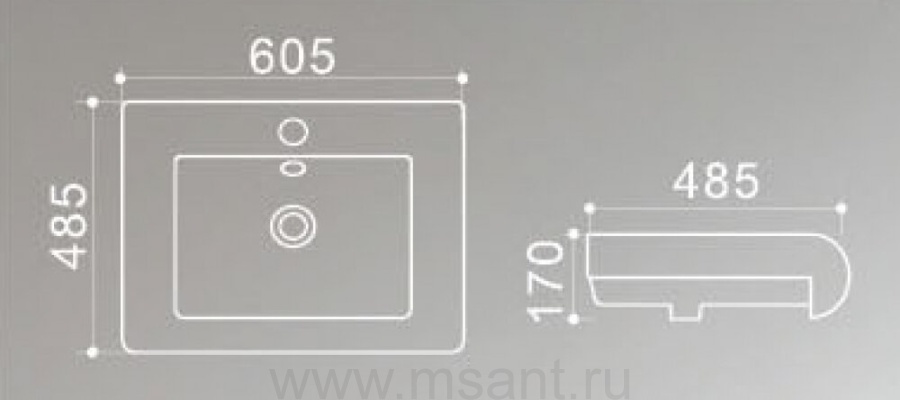 Раковина Azario 60,5х48,5х17 подвесная, белый