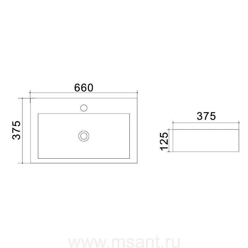 Раковина Azario 66х37.5х12.5 подвесная, белая