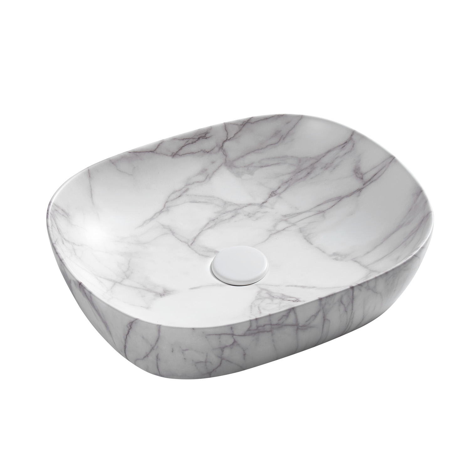 Раковина-чаша Azario 465x375x115 накладная, овальная, светлый мрамор