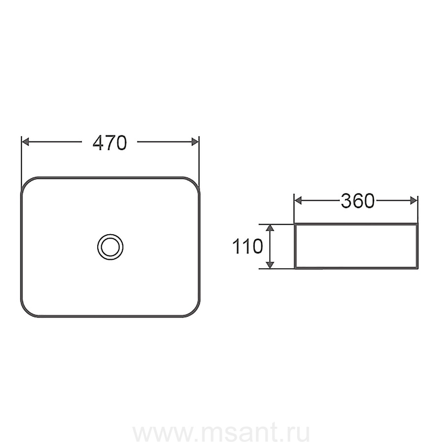 Раковина-чаша Azario 470х360х110 накладная, прямоугольная, черный матовый