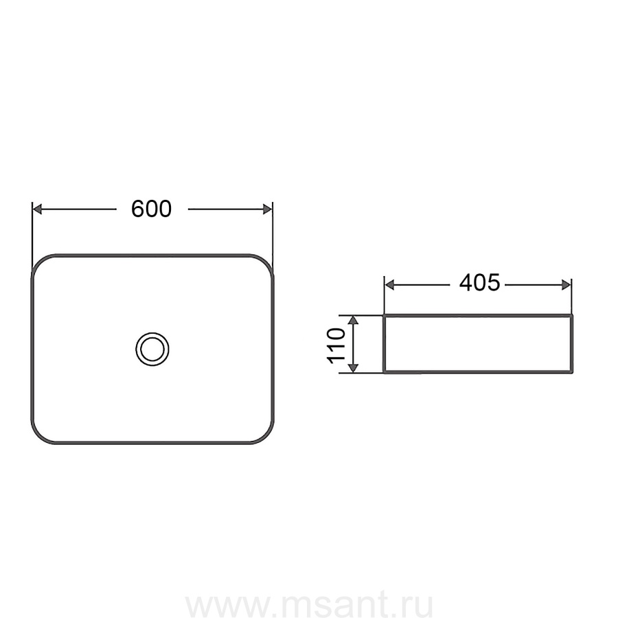 Раковина-чаша Azario 600х405х110 накладная, прямоугольная, черный матовый