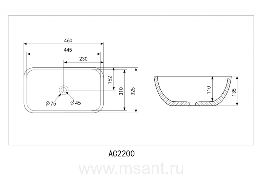 Раковина накладная ABBER Rechteck AC2200GS серебро