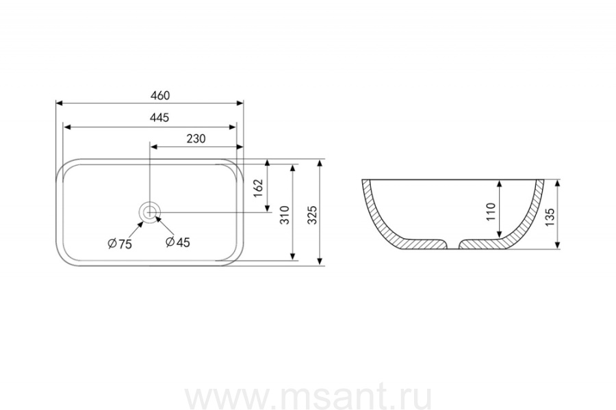 Раковина накладная ABBER Rechteck AC2200MW белая матовая