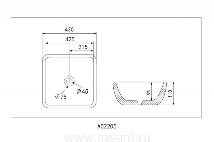 Раковина накладная ABBER Rechteck AC2205GG золото