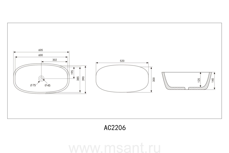 Раковина накладная ABBER Rechteck AC2206MW белая матовая