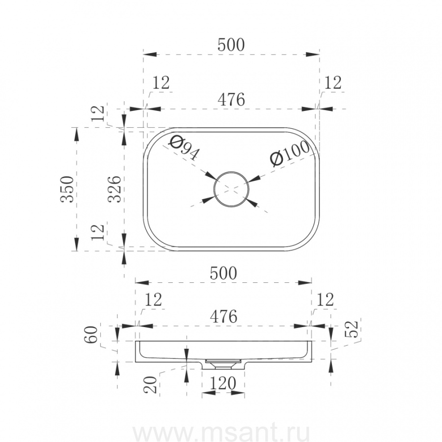 Раковина накладная ABBER Stein AS2602 белая матовая